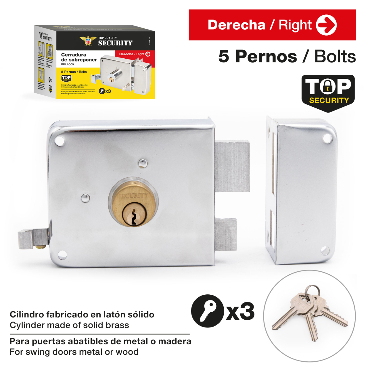 DESCRIPCION: cerradura de sobreponer 5 pernos derecha