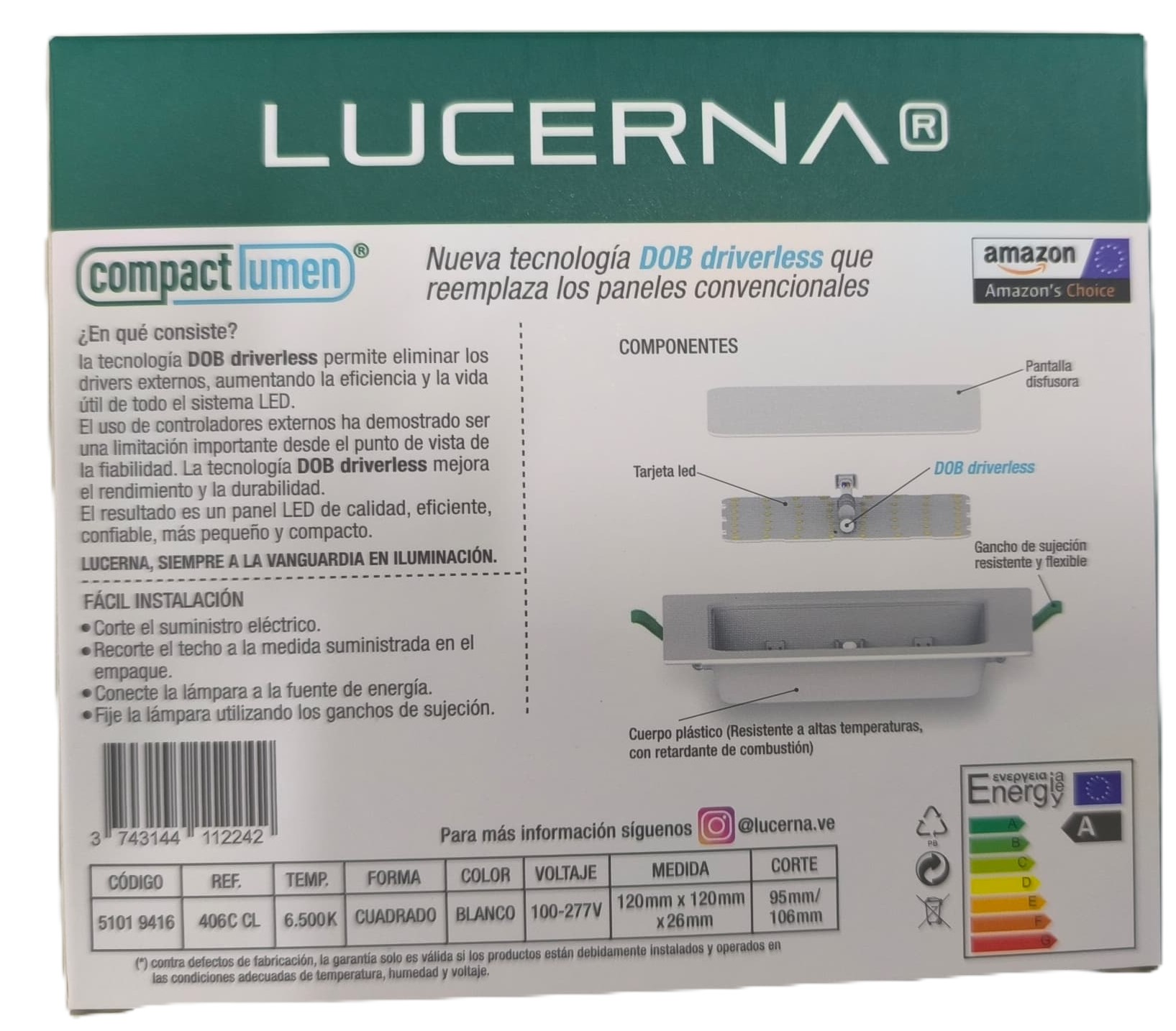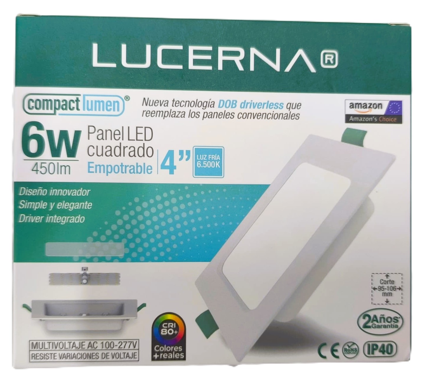DESCRIPCION: panel led embutida cuadrada 4″ 6w