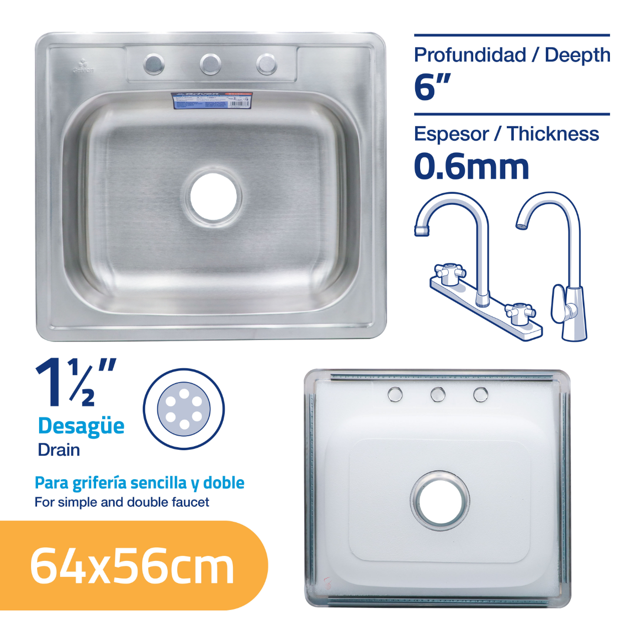 DESCRIPCION: fregadero acero inoxidable 64 x 56 cm