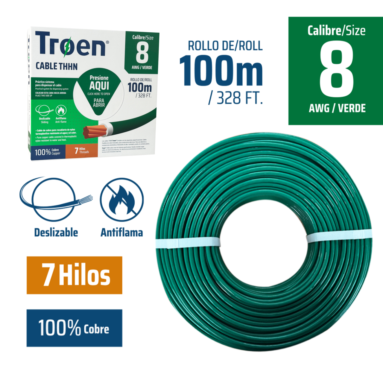 DESCRIPCION: cable awg 08 thhn verde
