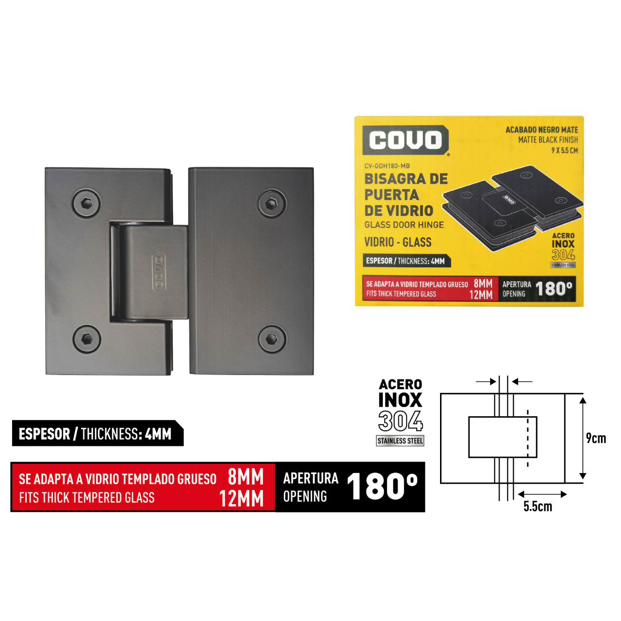 DESCRIPCION: bisagra de puerta de vidrio negro mate 1