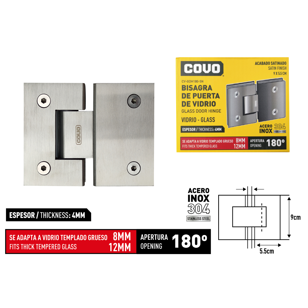 DESCRIPCION: bisagra de puerta de vidrio satinada 180