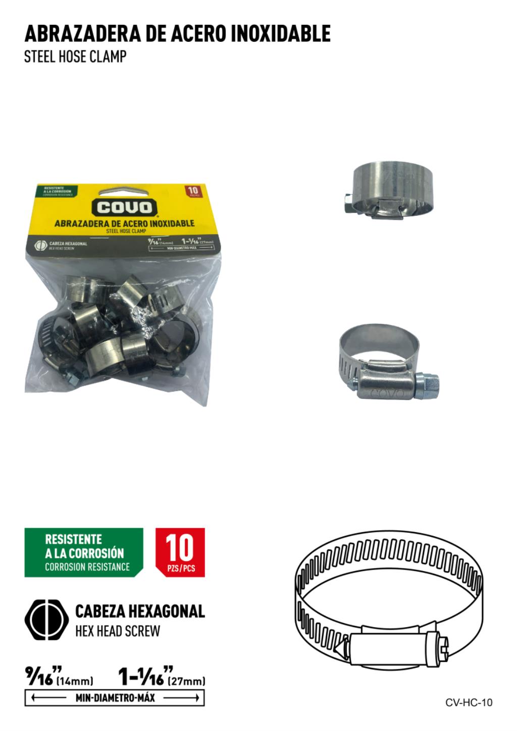 DESCRIPCION: abrazadera de acero inoxidable 14mm -27m