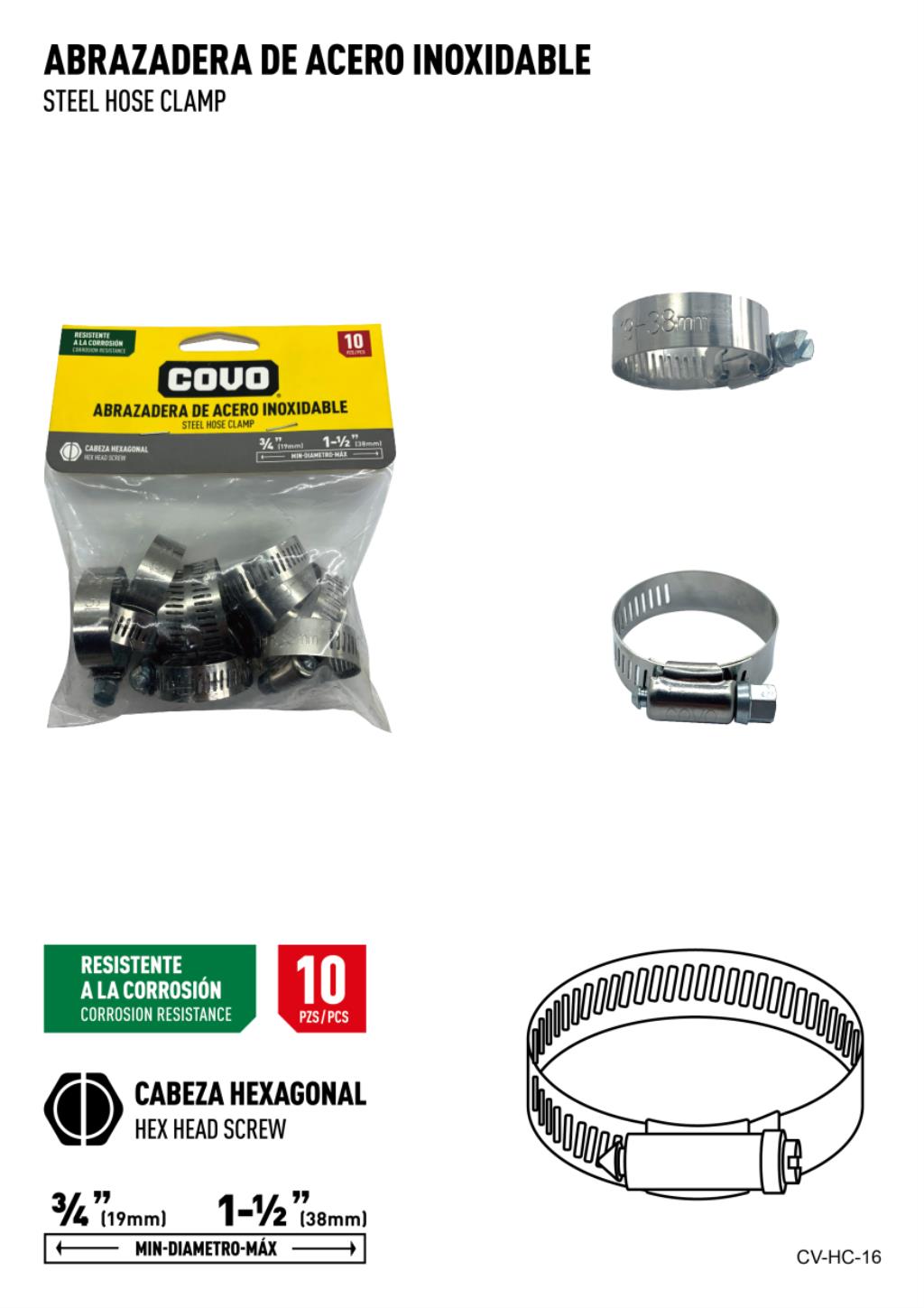 DESCRIPCION: abrazaderas de acero inoxidable 19mm – 3