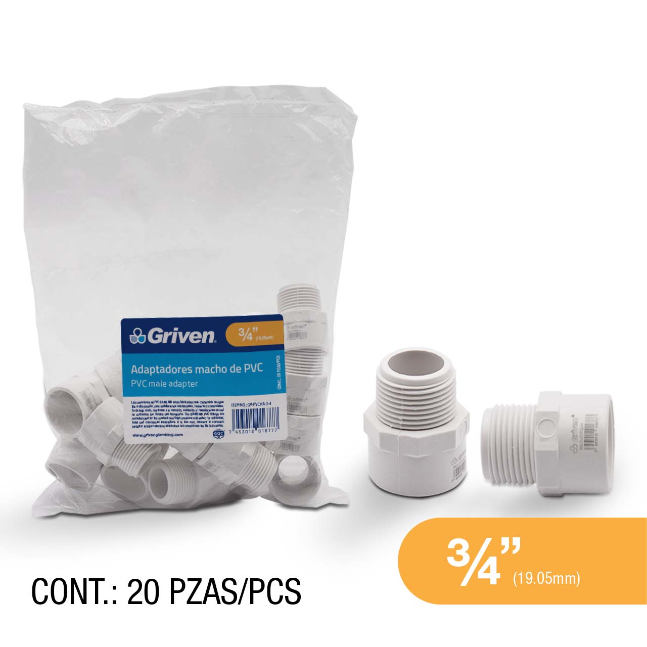 adaptadores macho de pvc 3/4 x 20 pzas.”