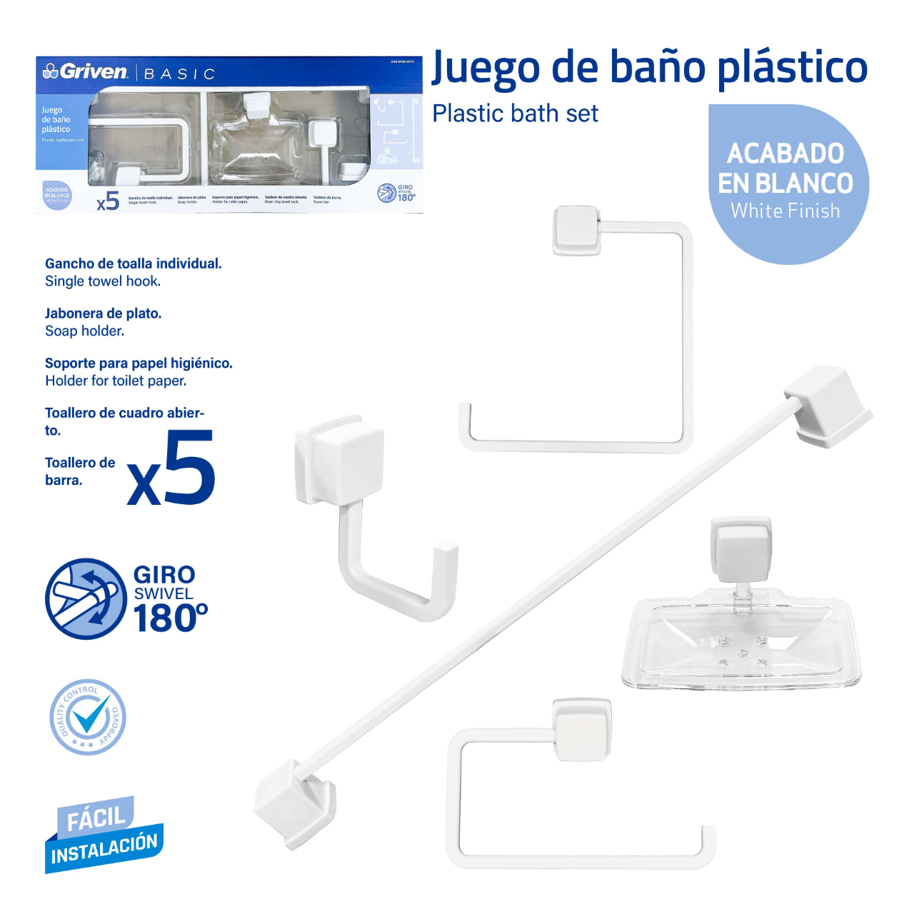 DESCRIPCION: juego de ba?o plastico blanco( 5 piezas)