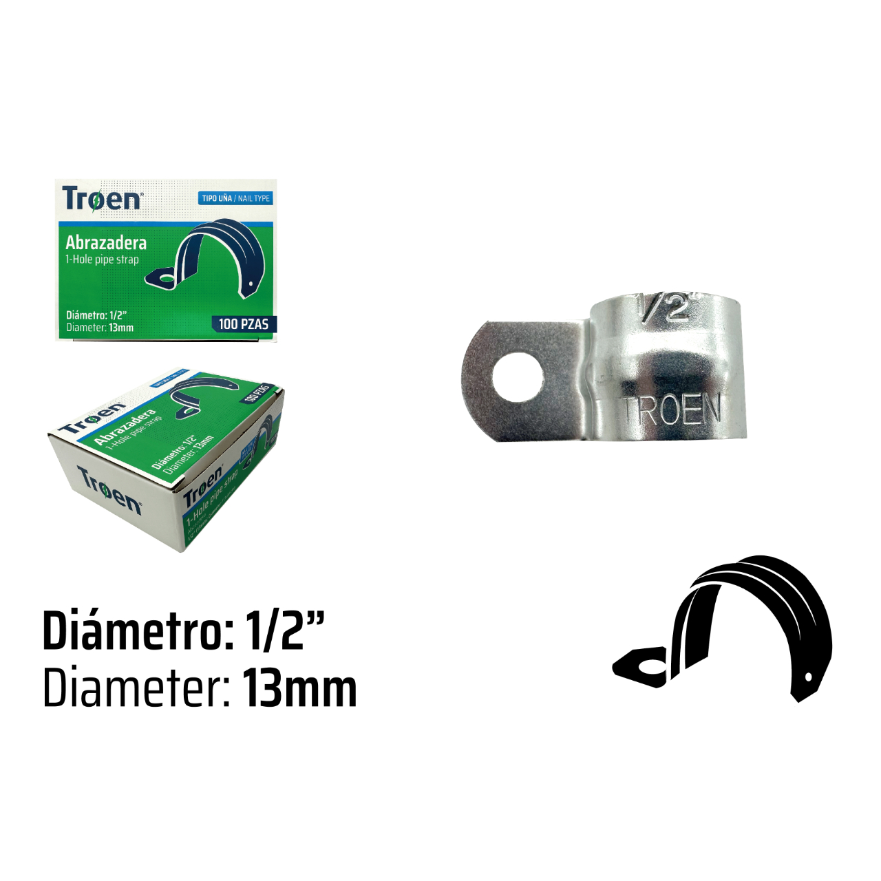 DESCRIPCION: abrazadera nail type 1/2″ – 100 pzs